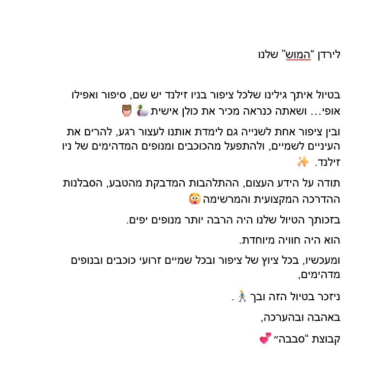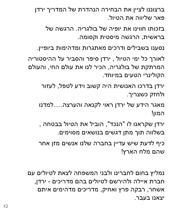 שלום, אני ירדן פאר, מורה דרך יליד 1996. מתגורר במצפה רמון שבהר הנגב, בה אני עוסק בהדרכה בעיקר בג'יפים, סנפלינג ואסטרונומיה, חי ונושם טבע בכל רמ"ח אברי. אני מוציא מסעות במדבר ובאירופה סביב הליכה, ג'יפים, סנפלינג ואופניים. מכור לטיולים בעולם ובין עשרות יעדים שבהם ביקרתי, יש כמה שנכנסו לי ללב כמו הרי הרוקי, ניו זילנד, הרי הטטרה, הפירנאים ויוון. אוהב מאוד ללמוד את העולם בנושאים כמו צפרות, שפת ציפורים, גששות, בוטניקה, זואולוגיה, גיאולוגיה, אסטרונומיה, תרבויות אדם, היסטוריה ועוד. בטיולים שלי השאיפה היא לייצר חיבור אישי בין המטייל לבין הטבע סביבו תחת הנגשה והדרכה באווירה נעימה וטובה.